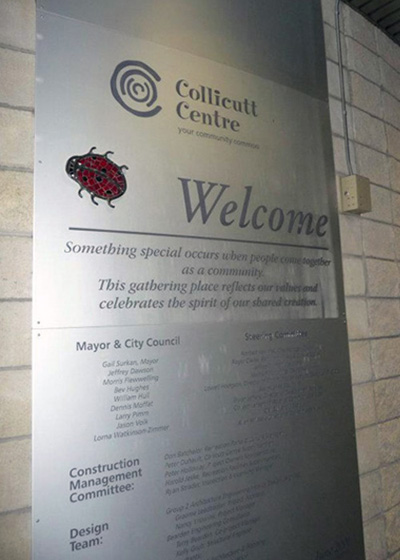 You will find 43 tiled ladybugs hidden all over the Collicutt Centre as a tribute to Dawnine and everything she valued. Can you discover them all? Go on your own ladybug hunt and get in touch with the joy of living. Conquer your fears and get back to your roots of love, respect and good nature. We are thankful for Dawnine’s leadership and we are better people for having been touched by her loving spirit.