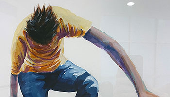 These three colourful drawings depict different poses of people jumping.